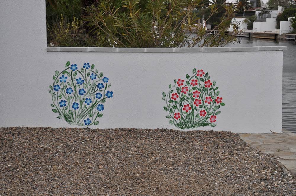 So schön kann Urlaub sein: Hübsche Bilder zieren die Sichtschutzmauer Großer Bootsanläger.